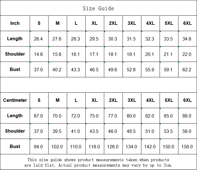 Centimeter | S | M | L | XL | 2XL | 3XL | 4XL | 5XL | 6XL |